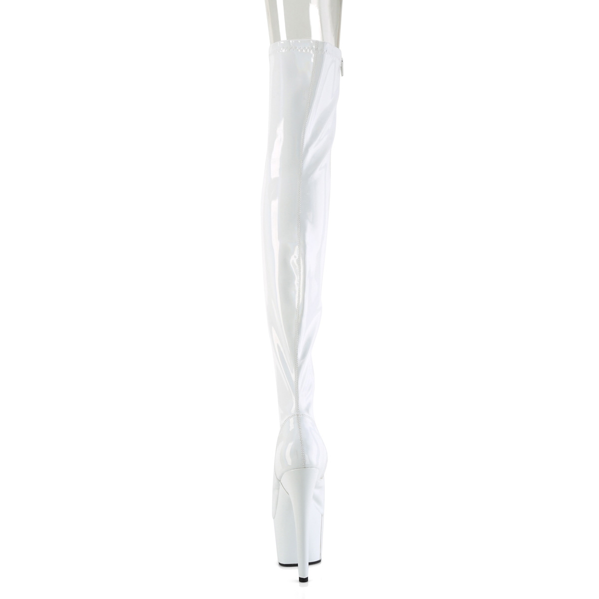 Peep Toe Overknee Plateau Stiefel Hologramm Stretchlack weiss von Pleaser USA.