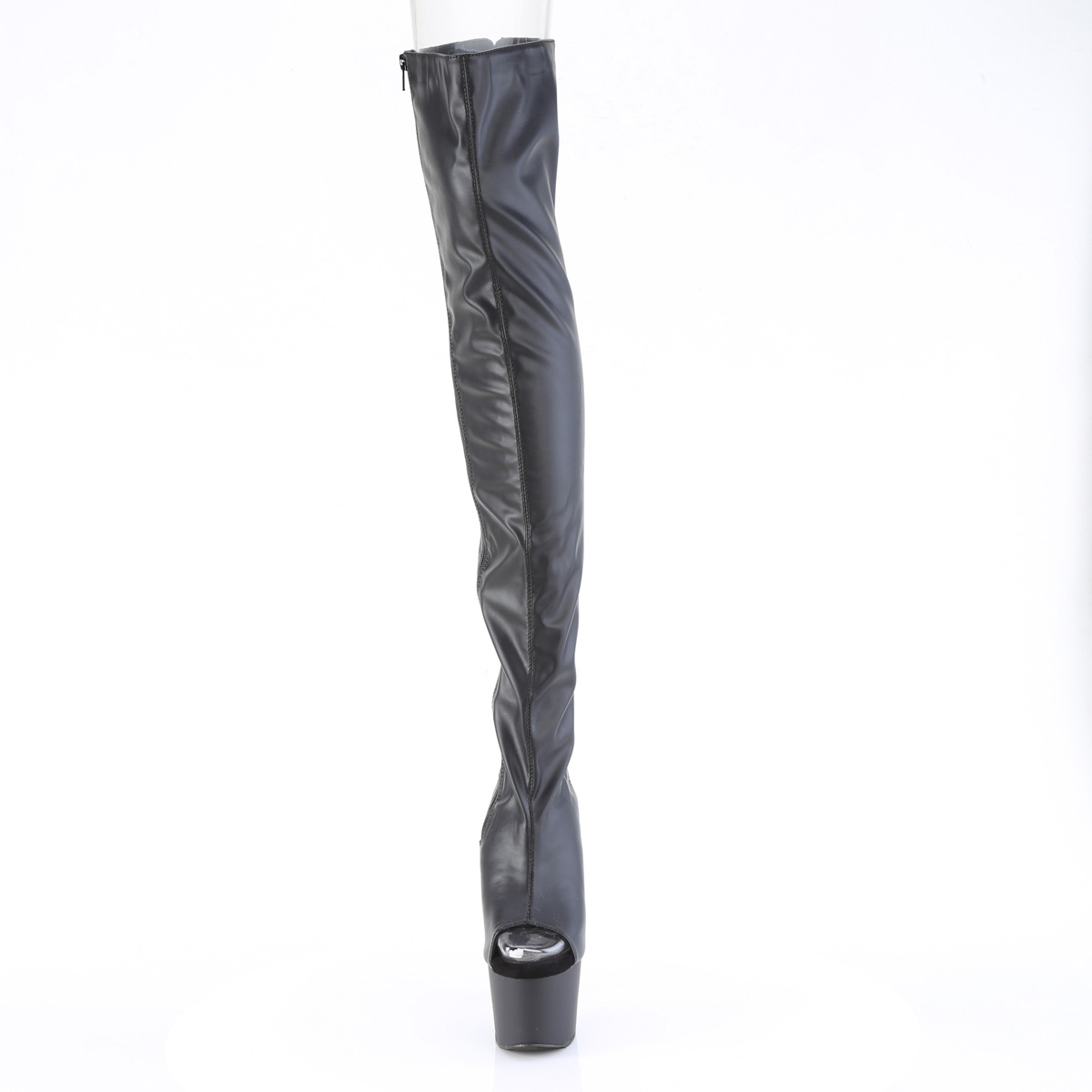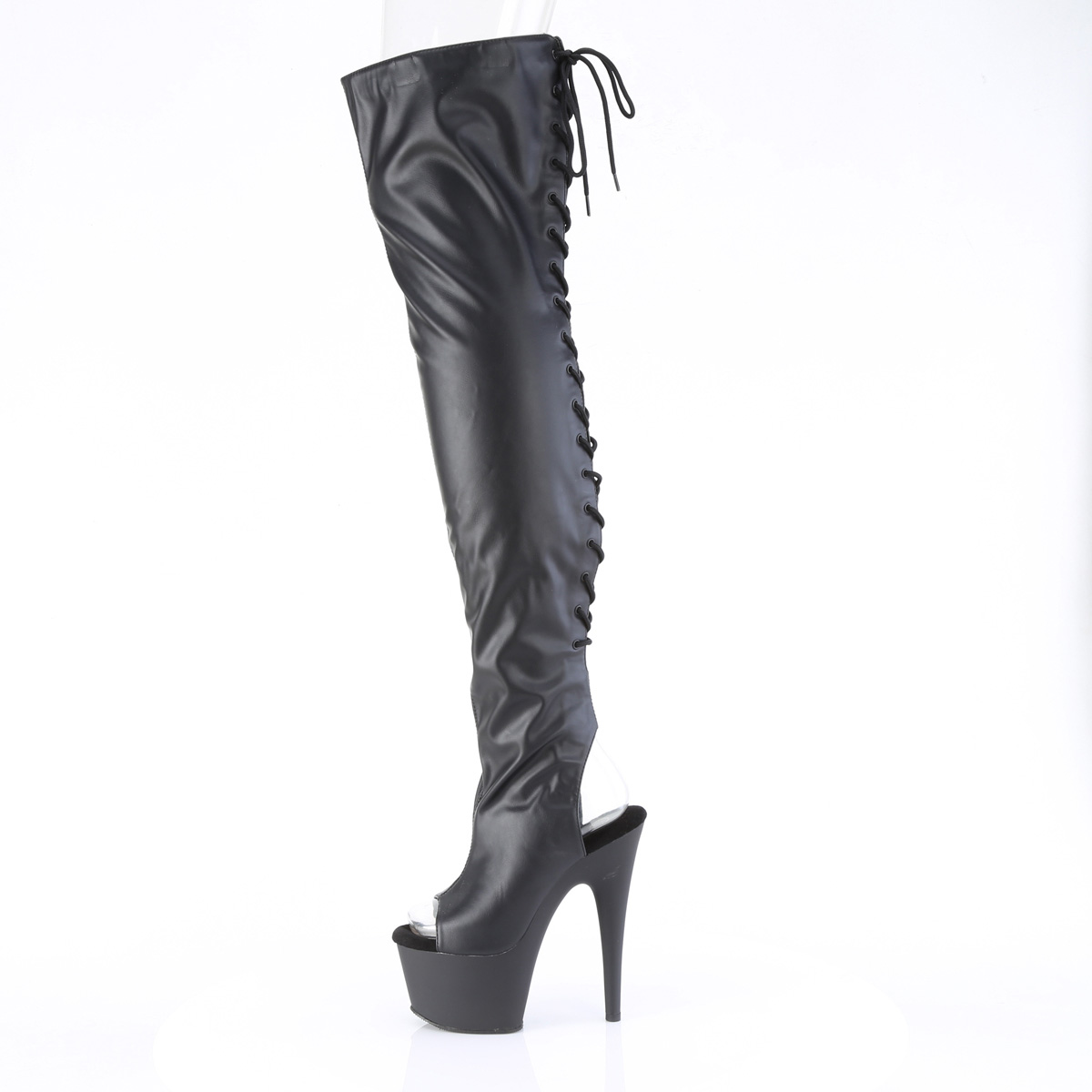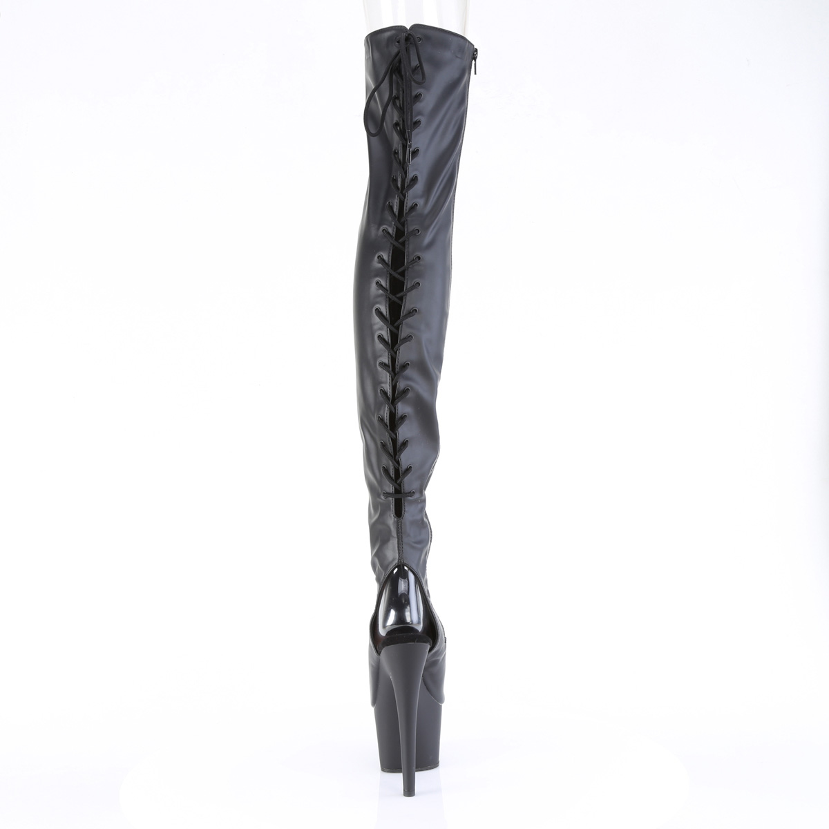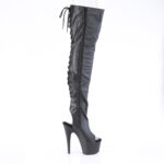 High-Heel Overknee Plateau Stiefel aus Stretchkunstleder mit Schnürung hinten der Marke Pleaser