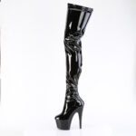 ADORE-3850 Overknee Plateau Stiefel mit Schnürung hinten schwarz Stretchlack