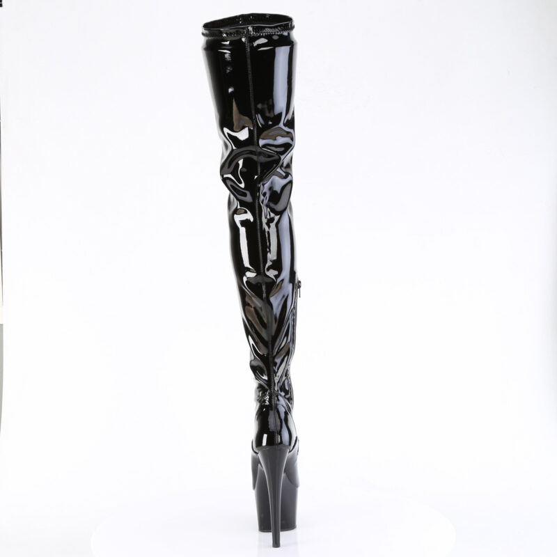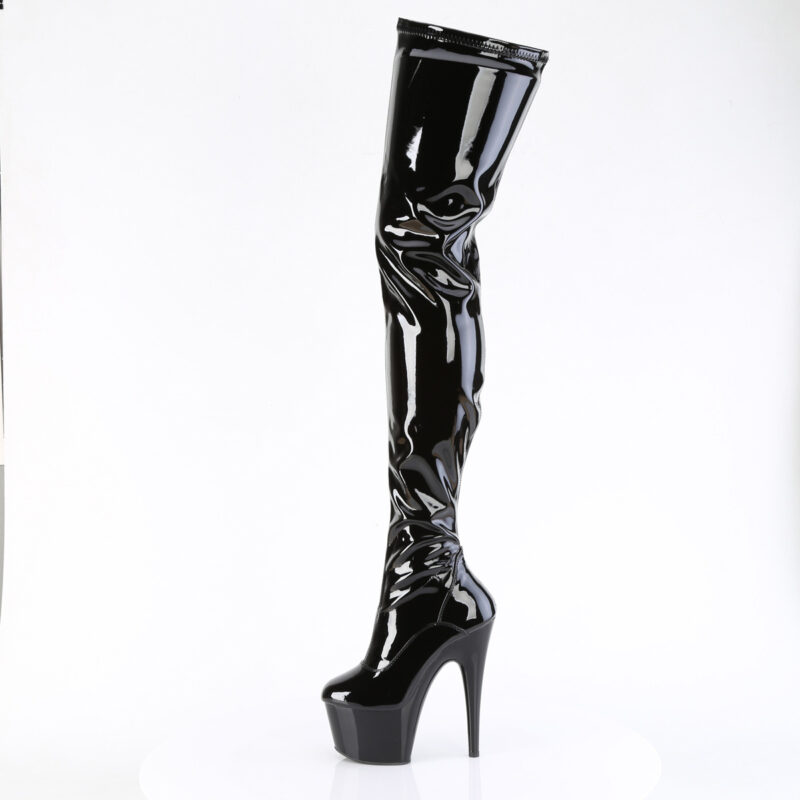 Overknee Stiefel mit Plateau Stretchlack schwarz von Pleaser USA.