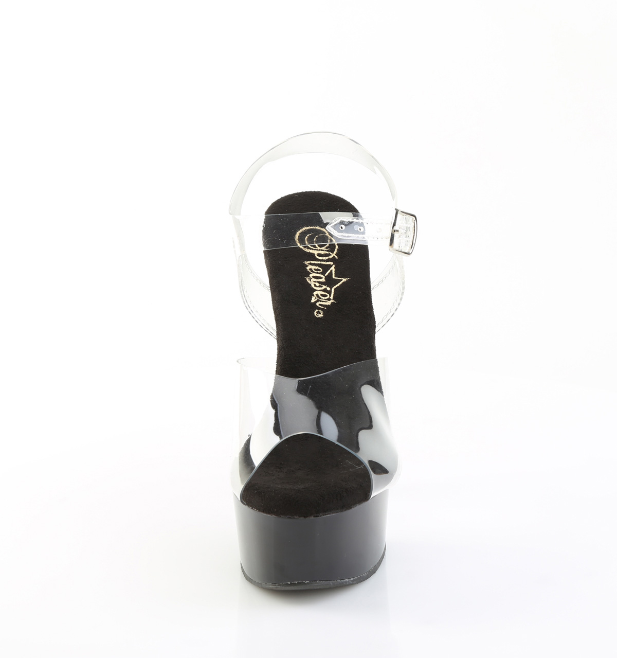 Durchsichtige Sandalette mit schwarzem Plateau von Pleaser USA.