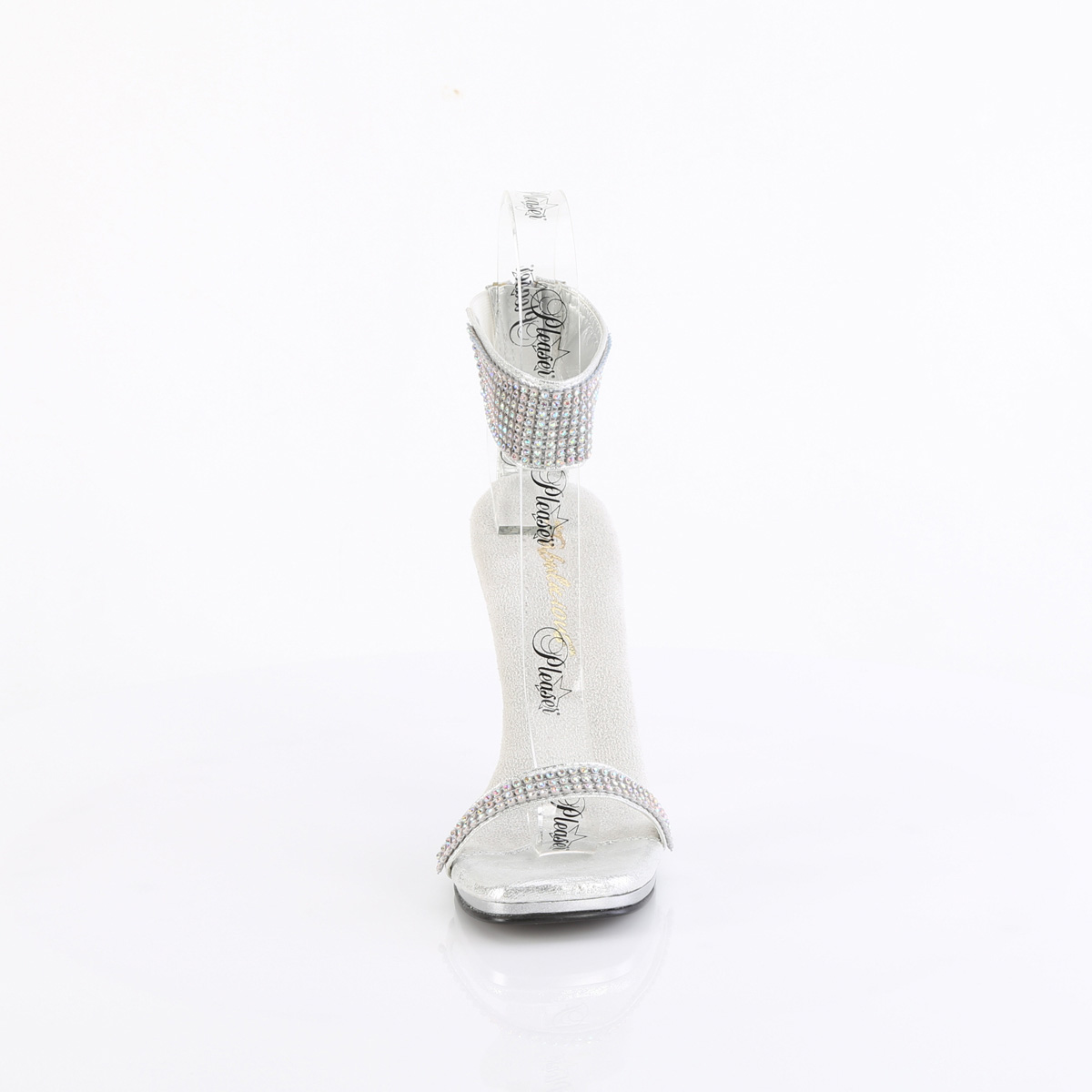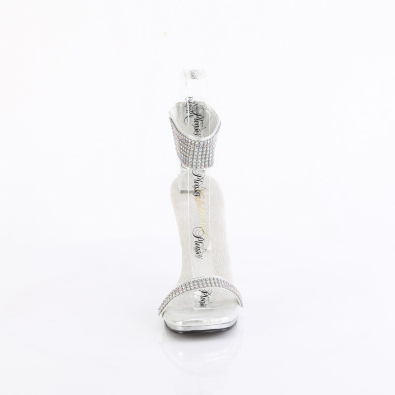 Elegante Mini Plateau Sandalette mit breitem strassbesetzten Fesselriemchen aus der Kollektion Fabulicious von Pleaser USA.