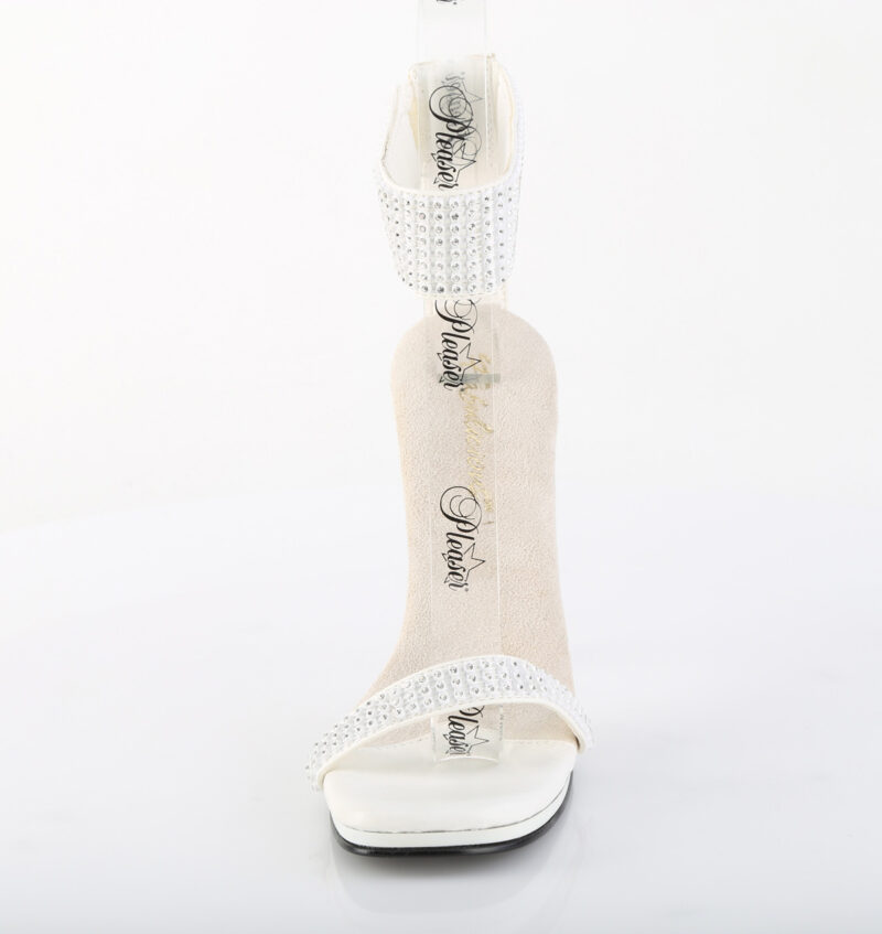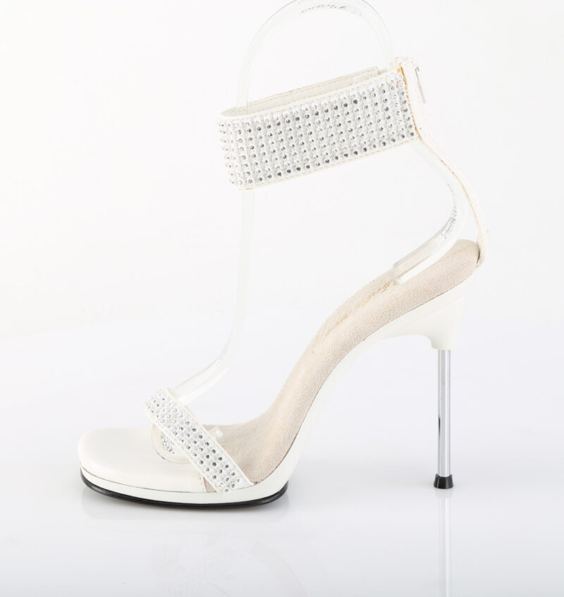 Elegante Mini Plateau Sandalette mit breitem strassbesetzten Fesselriemchen aus der Kollektion Fabulicious von Pleaser USA.