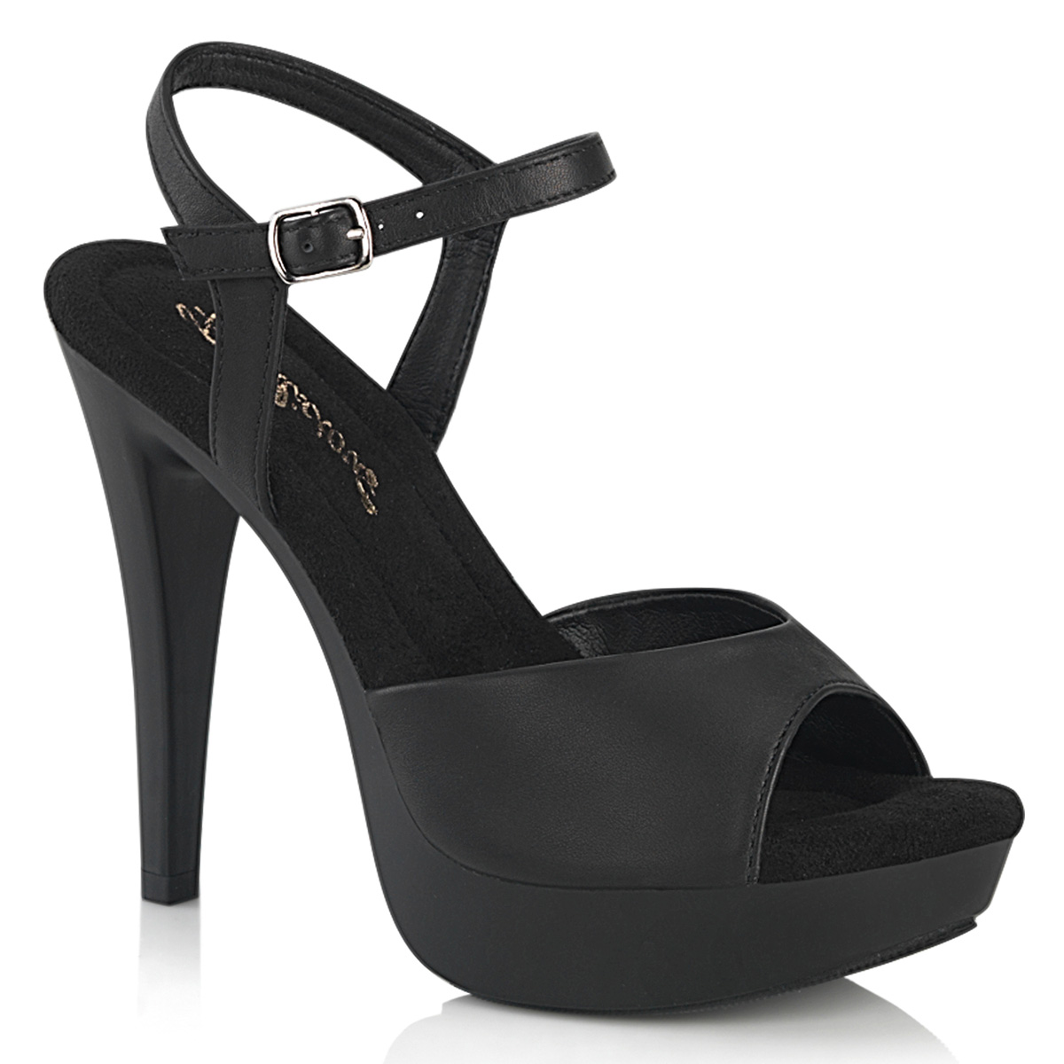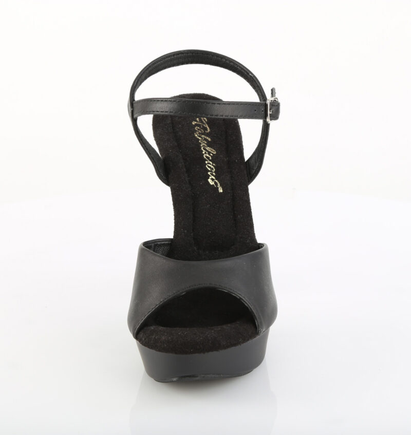 Klassische High Heels Sandalette in schwarz PU mit Riemchen und Plateau aus der Pleaser Kollektion Fabulicious.