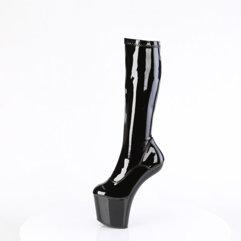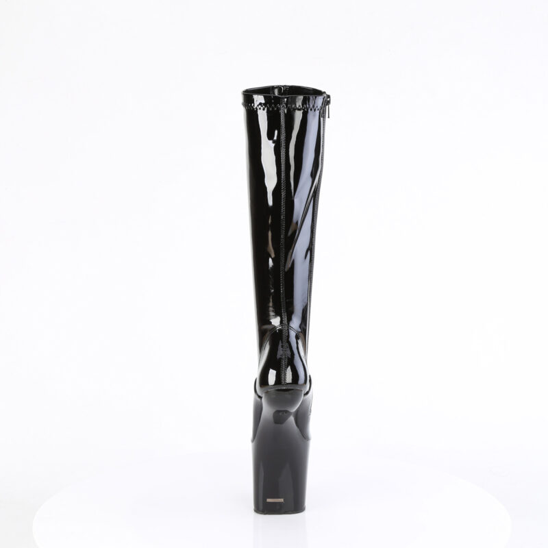 Heelless Plateau Kniestiefel schwarz Lack mit Reißverschluss von Pleaser USA.