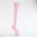Heelless Plateau Overknee Stiefel baby pink Stretchlack mit Reißverschluss von Pleaser USA.