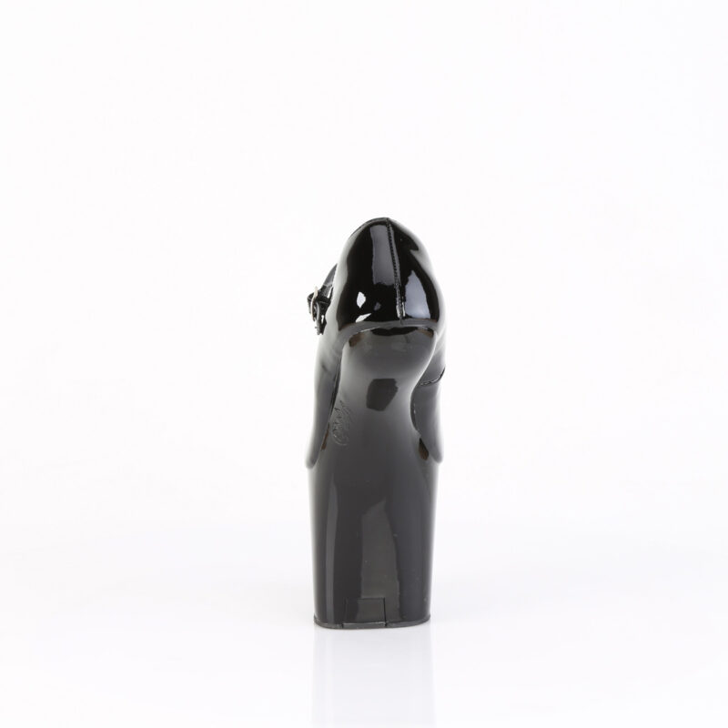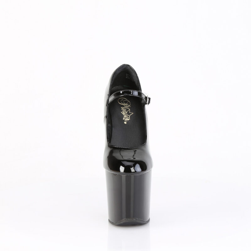 Absatzlose Heelless Mary Jane Pumps mit Plateau in schwarz Lack von Pleaser USA.