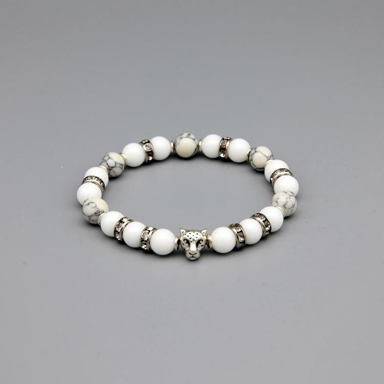 Damen Perlen Armband mit 8 mm runden weissen Jade Natursteinperlen, Jade Marble Perlen und Strass Rondellen,