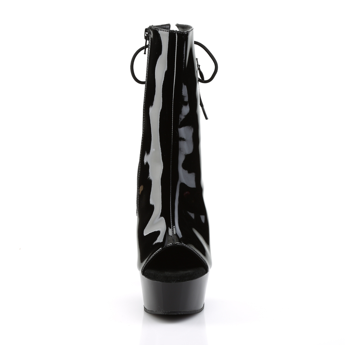 Offene Schnür-Stiefelette mit Plateau, schwarz Lack von Pleaser USA.