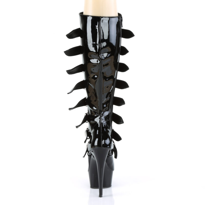 Kniestiefel mit Plateau und Schnallen in schwarz Lack von Pleaser USA.