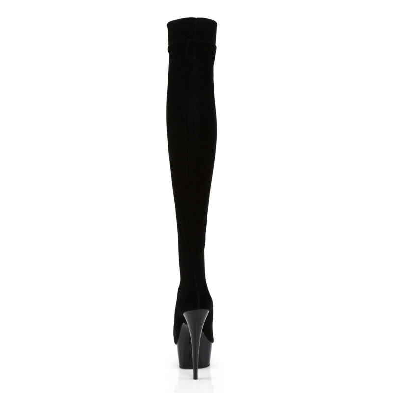 Overknee Stiefel mit Plateau in schwarzem Stretchsamt von Pleaser USA.