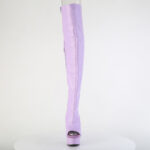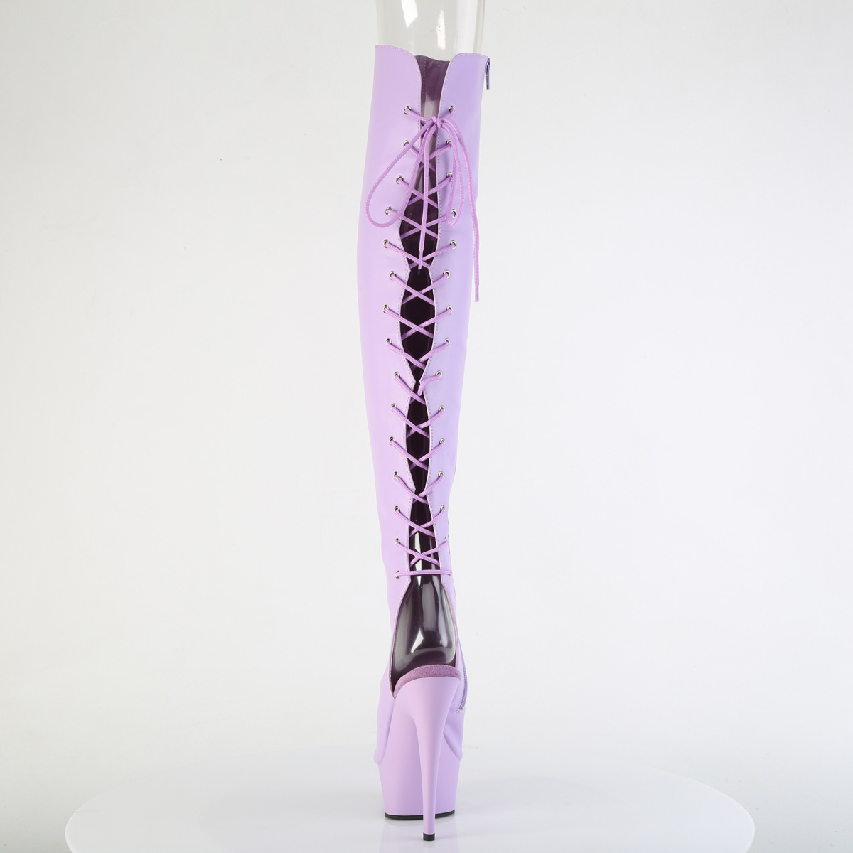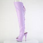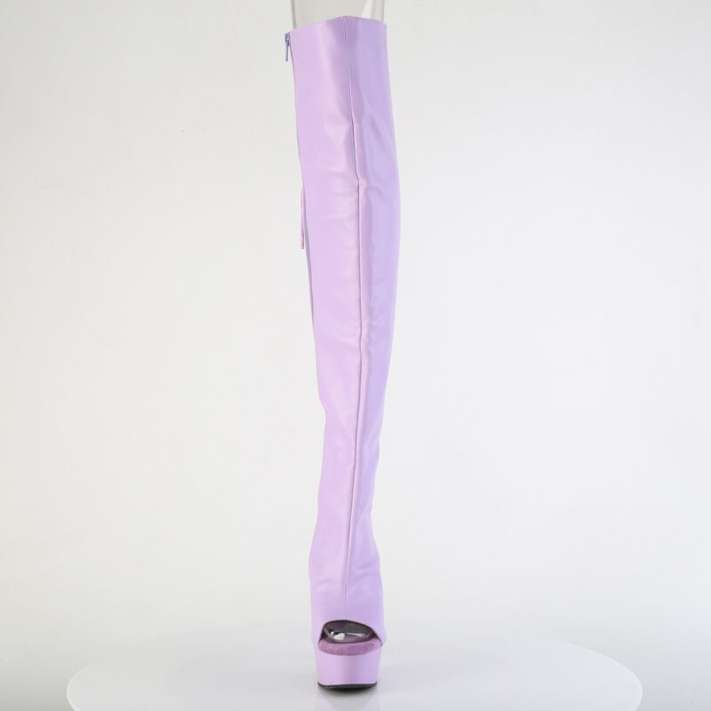 High Heel Overknee Stiefel in lavendelfarbigem Kunstleder PU mit Schnürung hinten der Marke Pleaser.