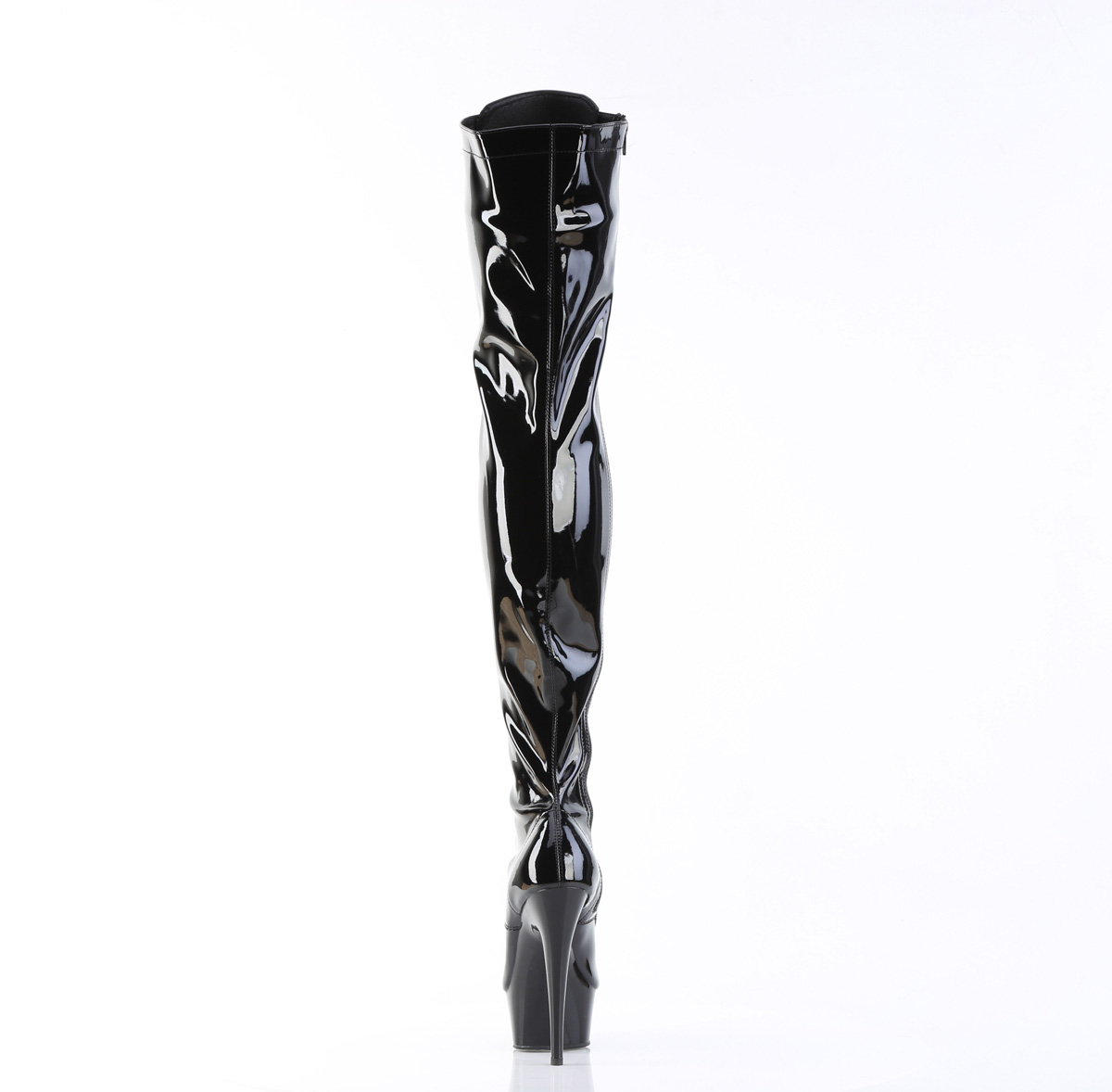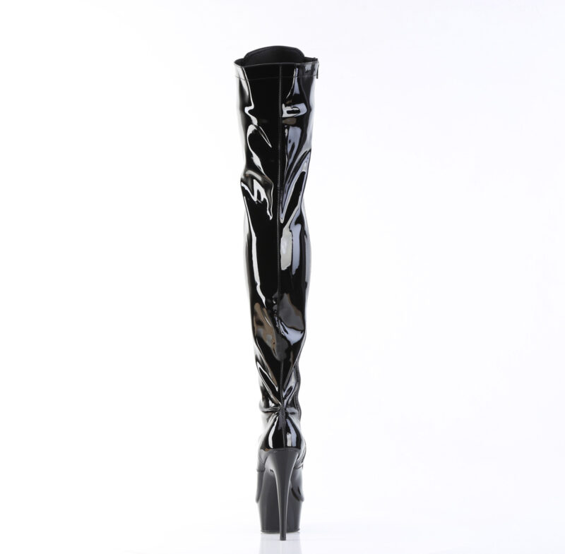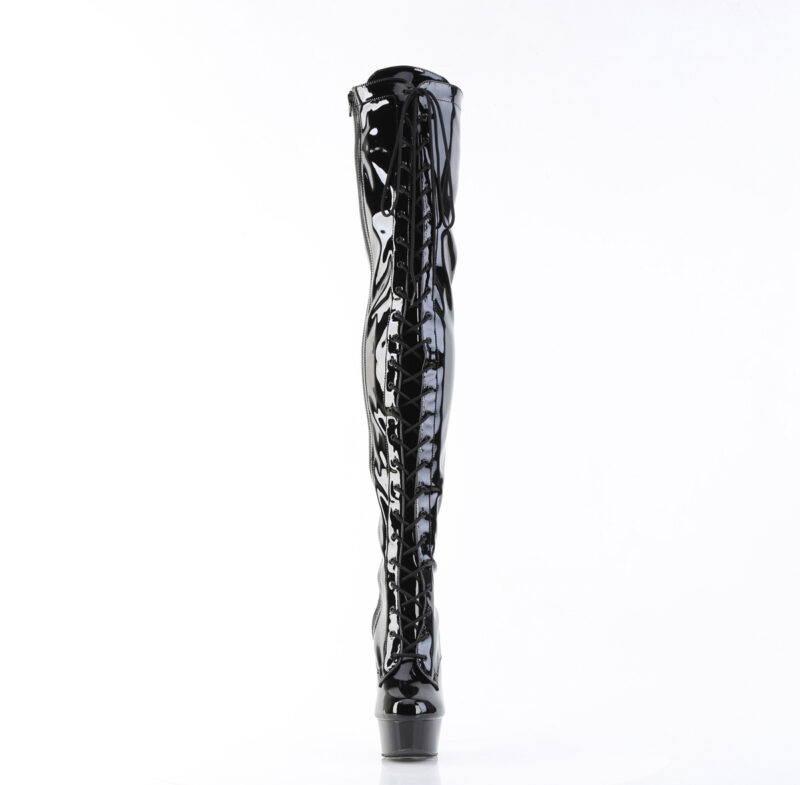 High Heel Overknee Stretchlackstiefel mit Schnürung der Marke Pleaser.