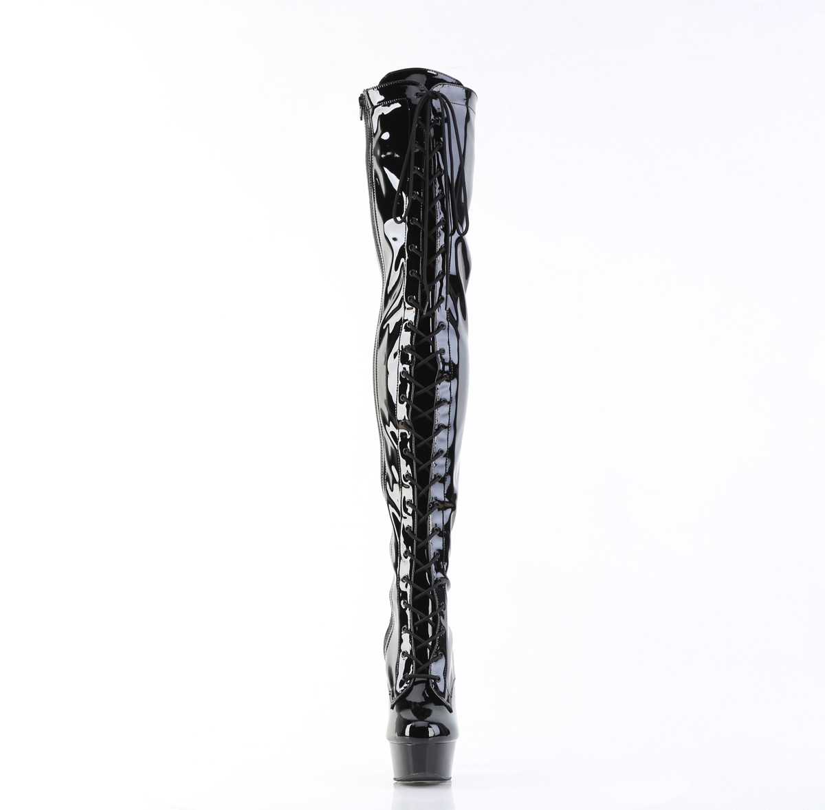 DELIGHT-3025 Peep Toe Overknee Stiefel mit Schnürung in schwarz Stretch-PU