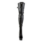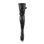 High Heel Overknee Stretchkunstlederstiefel mit Schnürung und Reißverschluss hinten von Pleaser USA.