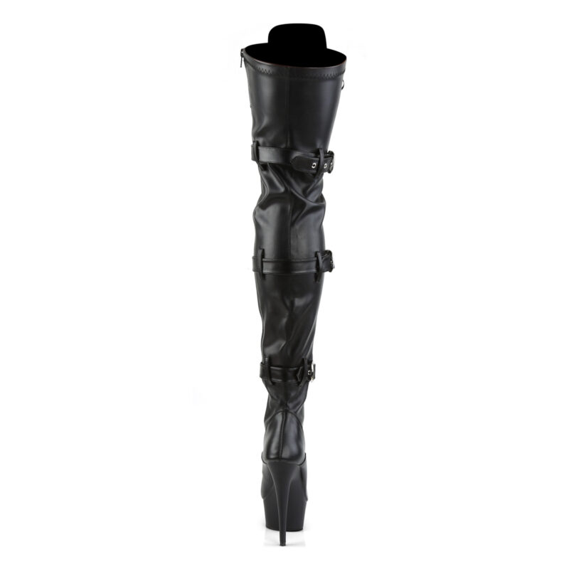 High Heel Overknee Stretchkunstlederstiefel mit Schnürung und Schnallen der Marke Pleaser.