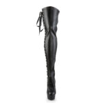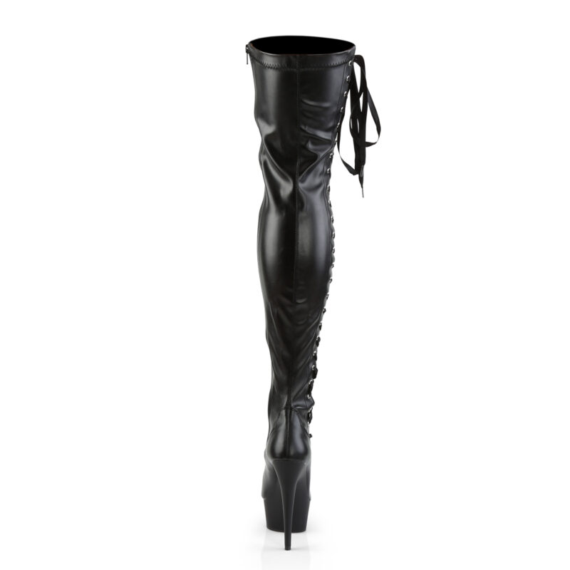 DELIGHT-3050 High Heel Overknee Plateau Stiefel schwarz Stretchkunstleder mit seitlicher Schnürung und Reißverschluss, sowie 15 cm Absatz und 4,5 cm Plateau.