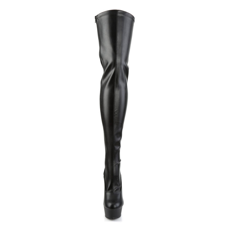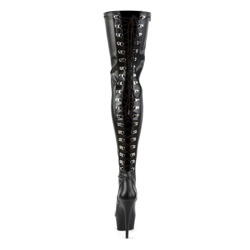 High Heel Overknee Stretchkunstlederstiefel mit Plateau und Schnürung hinten der Marke Pleaser.