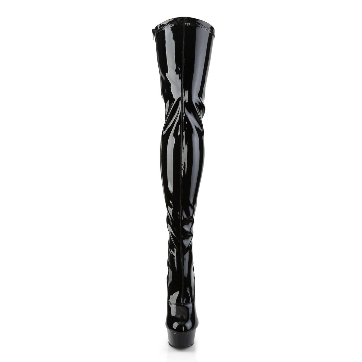 High Heel Overknee Stretchlackstiefel mit Plateau und Schnürung hinten der Marke Pleaser.