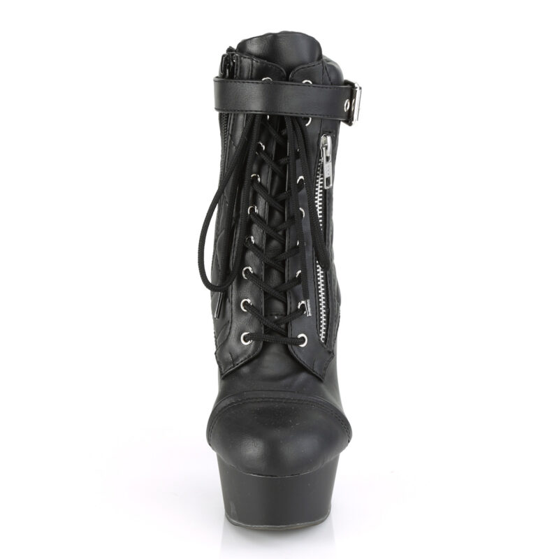 Schwarze High Heel Plateau Sneaker Booties mit Steppmuster von Pleaser USA.