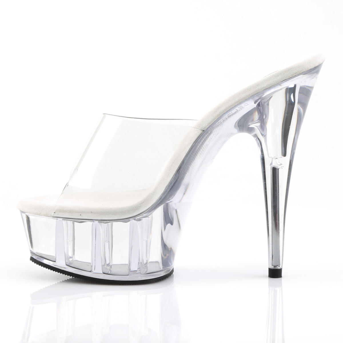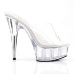 DELIGHT-601 Durchsichtige Plateau Pantolette mit klarem Plateau von Pleaser mit 15 cm Absatz und 4,5 cm Plateau. Das Obermaterial ist aus Kunststoff. Die helle Lederinnensohle ist weichgepolstert.