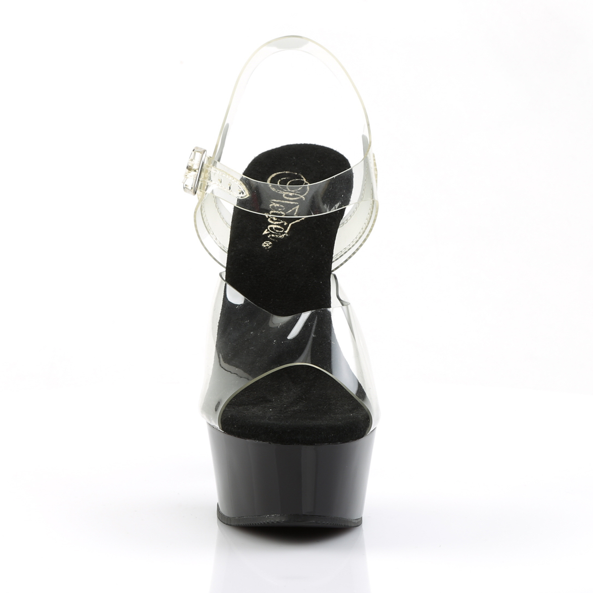 Durchsichtige Riemchen Sandalette mit schwarzem Plateau von Pleaser USA.