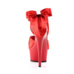 Rote Satin Plateau Sandalette mit breitem Fesselriemchen von Pleaser USA.