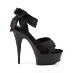 Schwarze Satin Plateau Sandalette mit breitem Fesselriemchen von Pleaser USA.