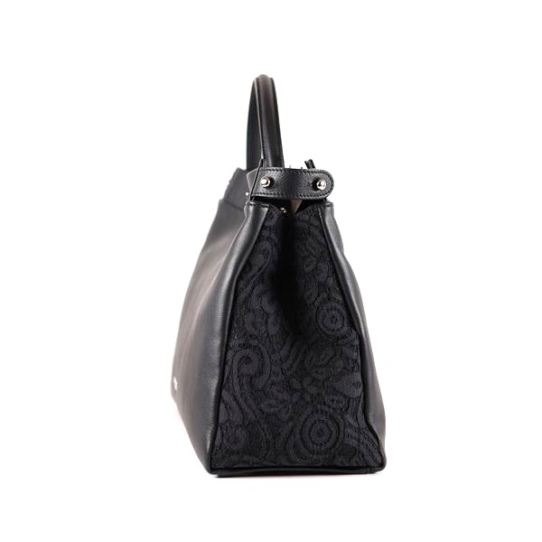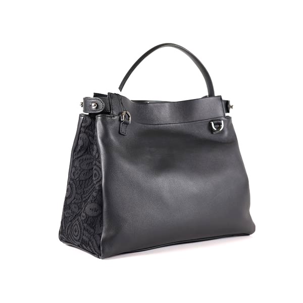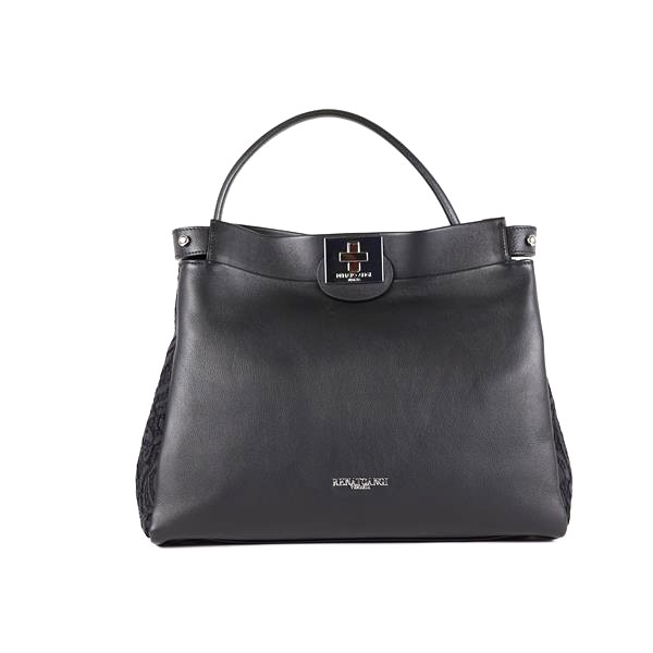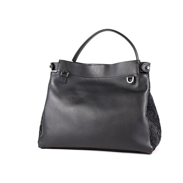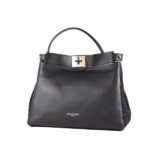 Handtasche aus schwarzem Leder gefertigt, die auch als Umhängetasche getragen werden kann