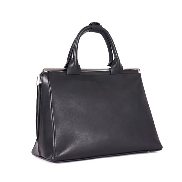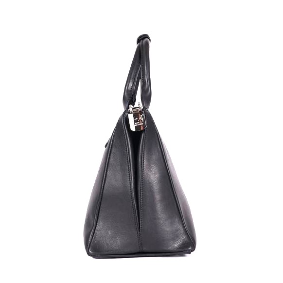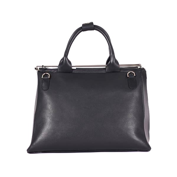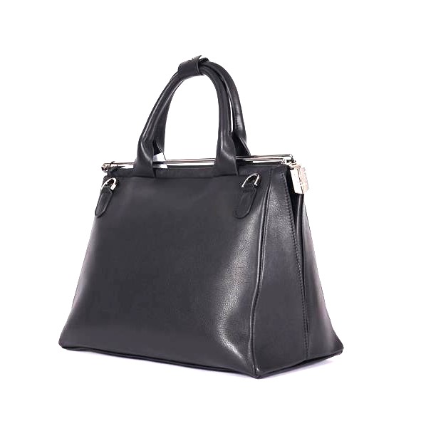 Handtasche aus schwarzem Leder gefertigt, die auch als Umhängetasche getragen werden kann