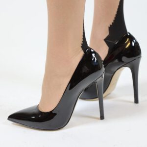 Sehr hohe schwarze High Heel Stiletto Lack Pumps aus der Kollektion Devious von Pleaser USA.