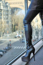 Schwarzer Overknee Stiefel mit 5 cm innenliegendem Plateau.
